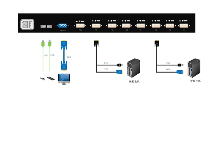 | 连接线端口 | 黑色D-SUB15接口*8(位于设备上) |